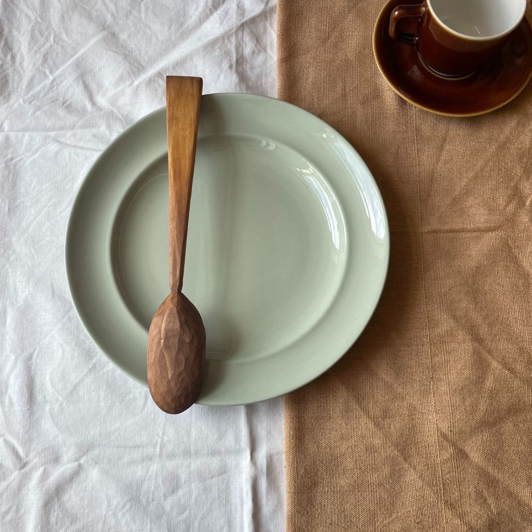 To care for your spoon, clean with warm soapy water. Never allow your spoon to soak, as this will cause the wood's grain to raise, damaging the finish of the spoon.